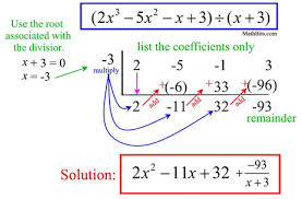Polynomial synthetic division is a simplified form of polynomial division that is used only in the case of division by a linear factor a monomial. It does away with division brackets and variables used in polynomial long division and focuses on the coefficients of the polynomial in question. This division by linear denominator is also called division through ruffini s rule paper and pencil computation. Maths division is the heart of maths.